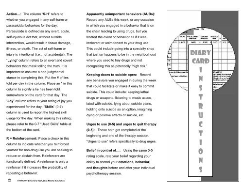 It also allows the user to have quick access to descriptions of the items on the diary card and add their own skills and. - A skills coach. Diary Cards are a key component of Dialectical Behavioral Therapy.